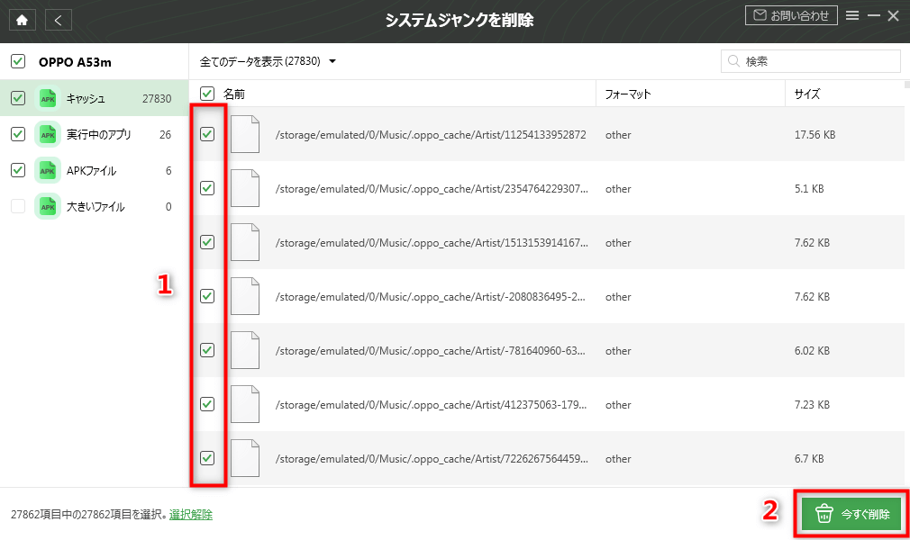 クリーンアップしたいジャンクファイルを選択した後、「今すぐ削除」ボタンをクリックし、ジャンクファイルをクリーンアップできます。