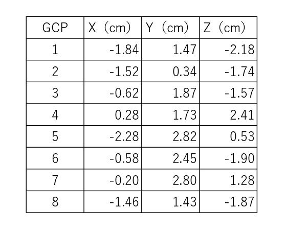 XY座標誤差 3cm、Z座標誤差 2.5cm以内を実現。