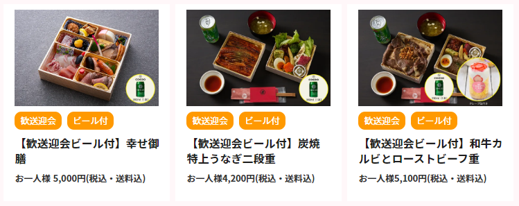 入社式や歓送迎会でのご利用に最適なお食事プランを複数ご用意しました。交流会を盛り上げるためのゲーム「格付けチェックBOX」付きのお食事や、高級感のあるうなぎや黒毛和牛を使用したお食事など、豊富なラインアップを取り揃えました。