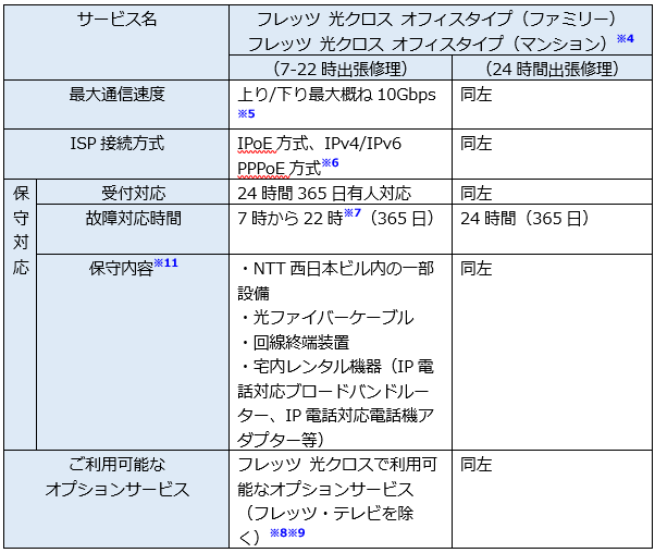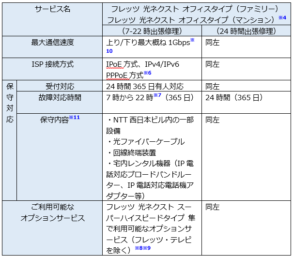 ※4 「フレッツ 光クロス オフィスタイプ(マンション)」、「フレッツ 光ネクスト オフィスタイプ(マンション)」は、ひかり配線方式のみの提供です。