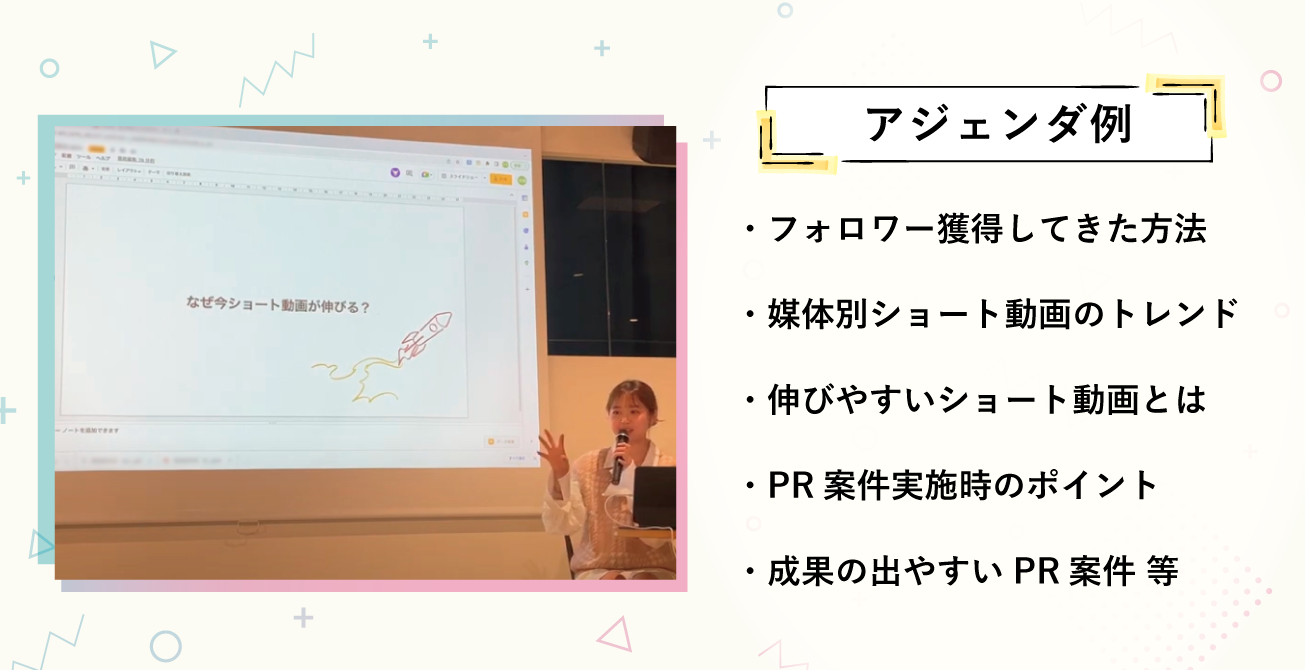 TikTokのファン数を0〜75万人まで伸ばしたノウハウをもとに、クリエイター以外にもショート動画のセミナー講師としても活動領域を広げている。