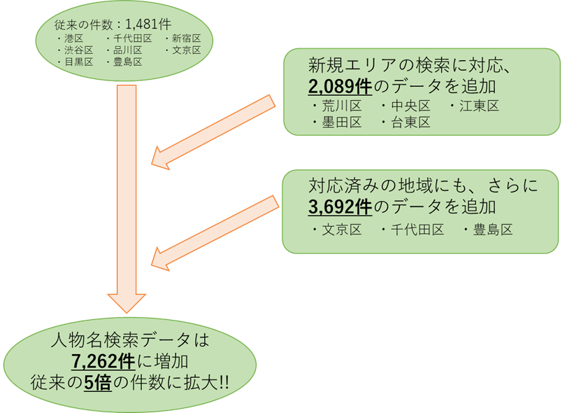 - アップデートのポイント① 人物名検索の対象エリア拡大、既存エリアも拡充