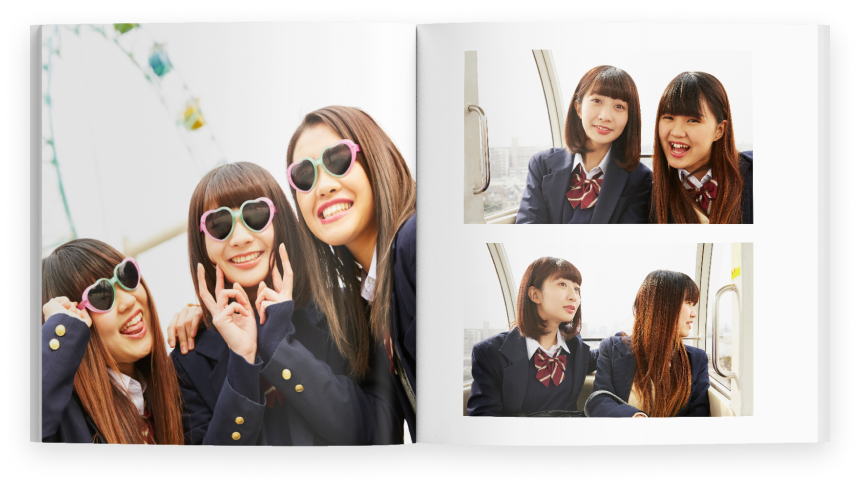 友人と学校生活やプライベートで撮りためた想い出を、卒業アルバムとして一冊のフォトブックに。