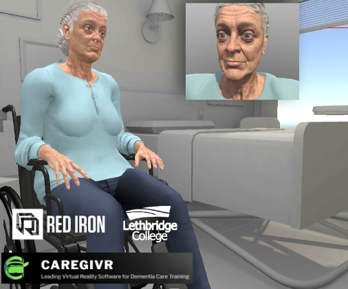 認知症患者との関わり方や接し方について、最良の実践方法を学ぶことを目指すCareGiVRを活用する事で、AIとパフォーマンス(顔や動き)のキャプチャを通し、多種多様な感情を表す仮想の患者と対話することができます。研修シナリオは、セラピストや医療関係者とともに作成され、30分間に60ステップのシミュレーションが行われます。即座に研修内容に対するフィードバックが行われます。