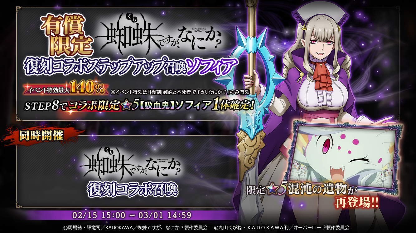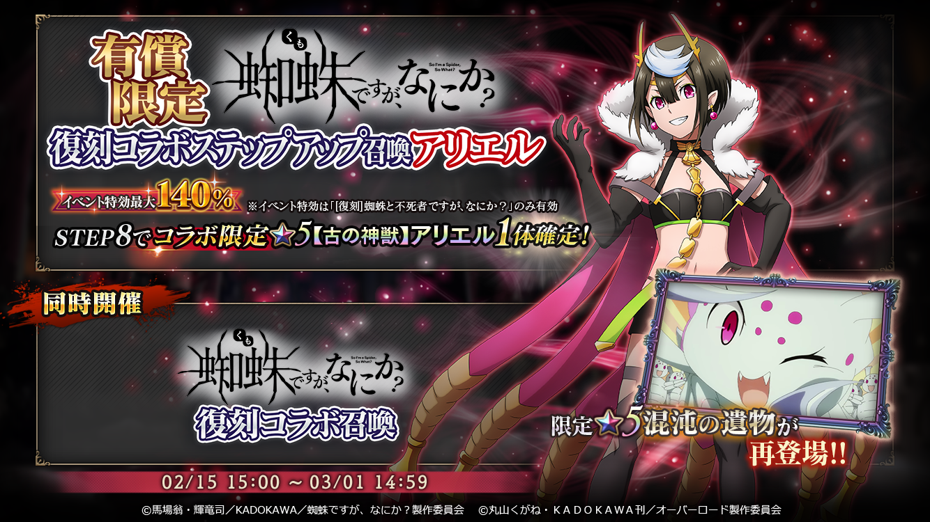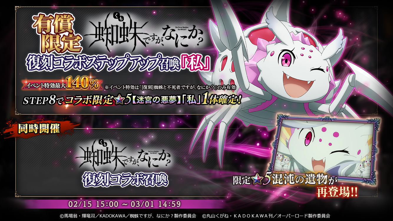 ■コラボイベント召喚『有償限定 蜘蛛ですが、なにか?復刻コラボステップアップ召喚』開催!