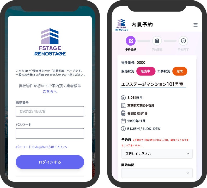 いつでもどこでも物件確認・内見予約が可能なWebシステムです。仲介業者様の内見予約の手間(名刺FAXや電話など)の削減および、24時間365日対応可能で、ご案内の機会損失がゼロに!