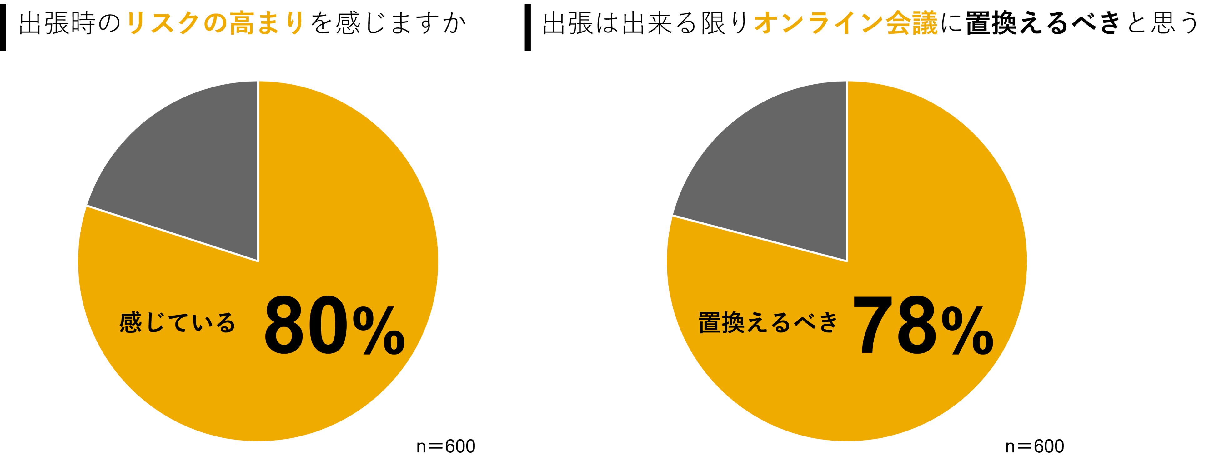 この結果により、出張者が安全・安心して出張できる仕組み、本当に出張が適切か取捨選択できる仕組み、環境に配慮した出張方法を選択できる仕組みが求められていることがわかります。