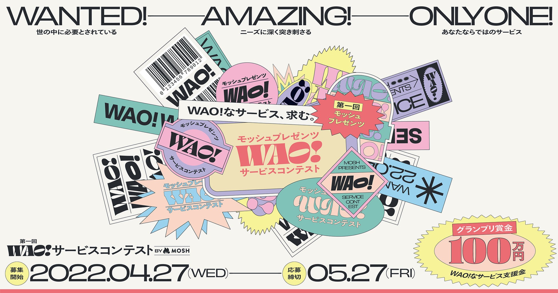 「WAO!サービスコンテスト」とは、「WANTED」(強く求められていて)「AMAZING」(ニーズに深く刺さる)「ONLY ONE」(唯一無二)な、思わず「WAO(ワオ)!」と声をあげたくなる個性あふれるサービスを発掘し、MOSHとともに広めるコンテストです。