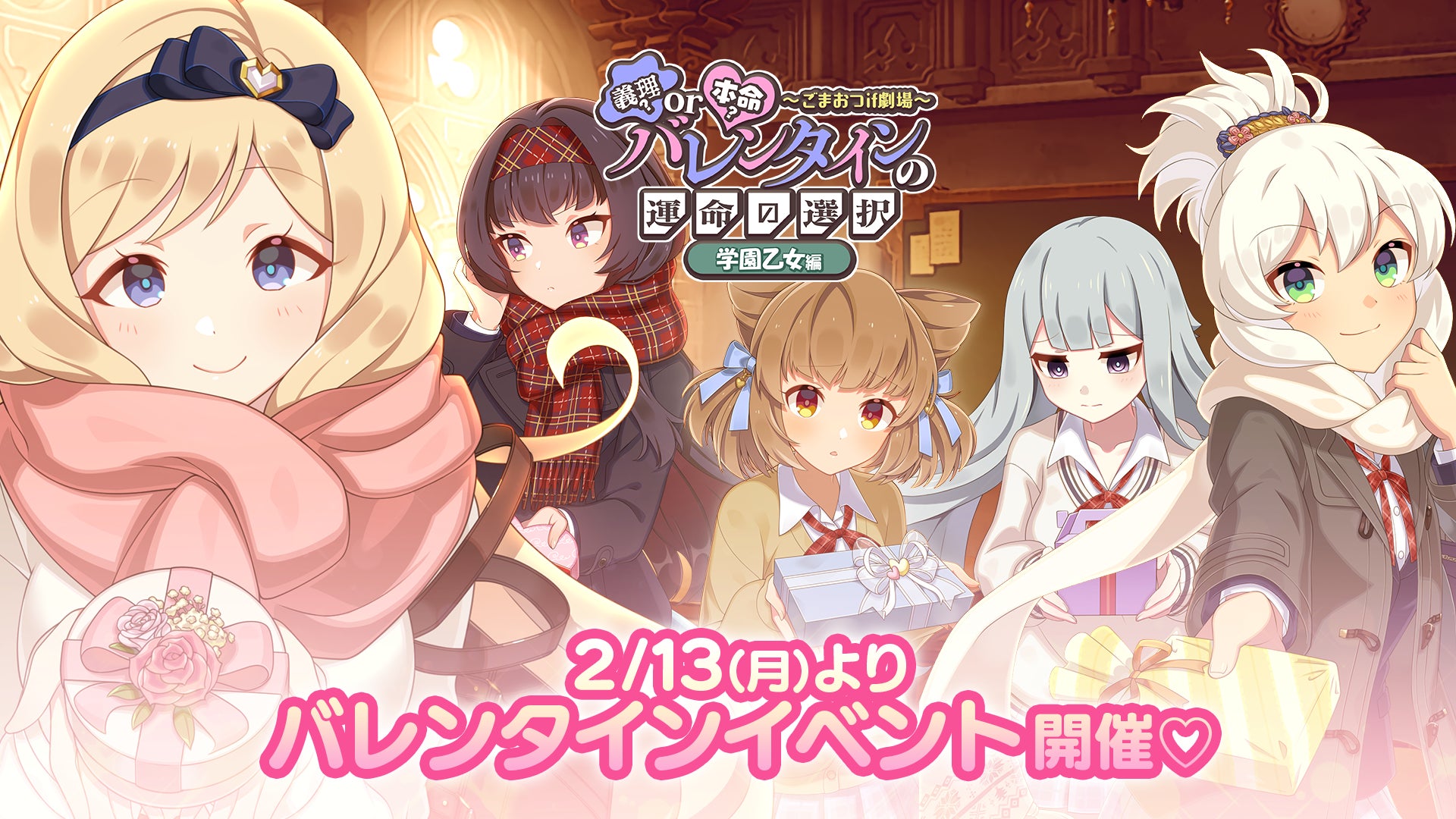 2023年2月13日(月)メンテナンス後より、バレンタインイベント「ごまおつif劇場:義理?or本命?バレンタインの運命の選択 学園乙女編」を開始いたしました。