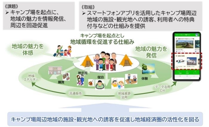 これにより、周辺施設を探す手間が省けるなど利用者の行動が広がるとともに、キャンプ場を地域の拠点とした魅力的な周辺施設への誘客を促進し、地域経済の活性化に貢献します。