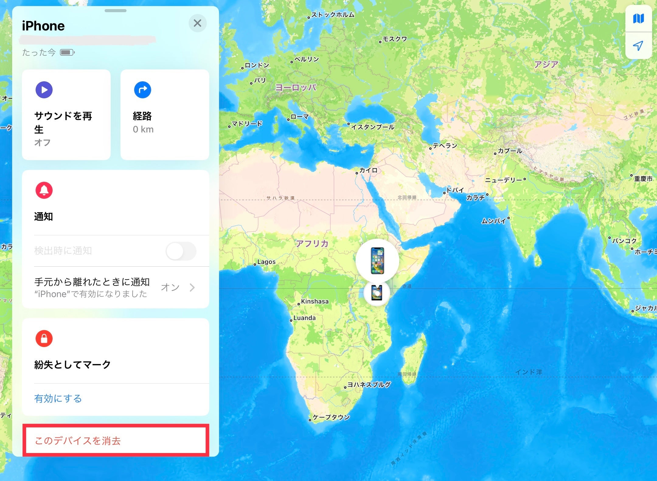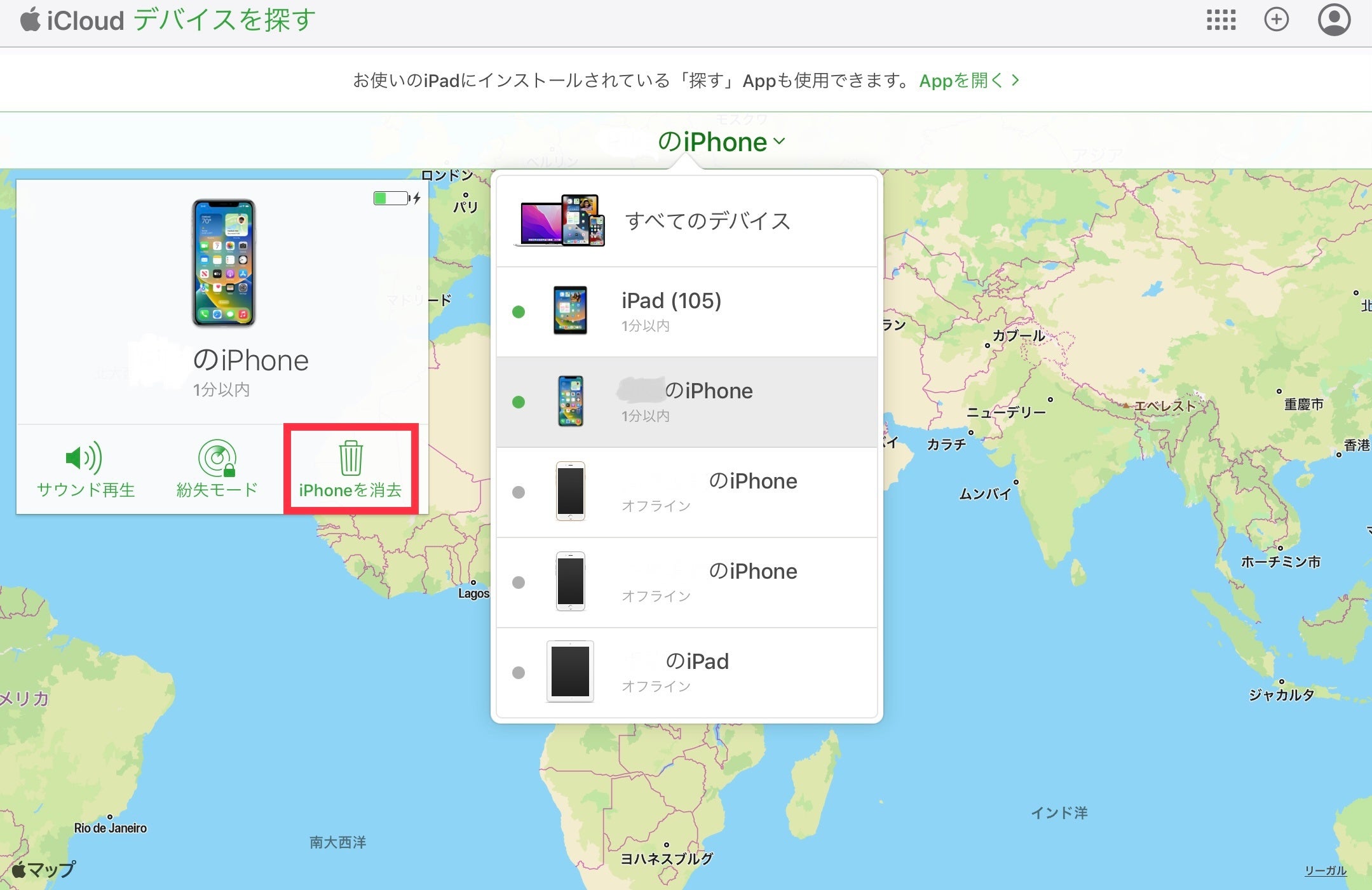裏ワザ5、他のデバイスの「探す」アプリでiPhoneを初期化する
