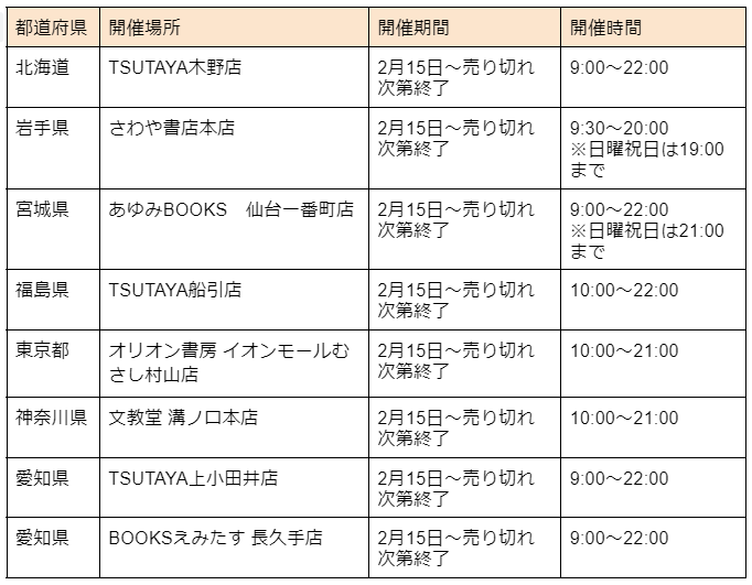 ※販売状況次第では開催期間を短縮する場合がございますので、予めご了承ください。