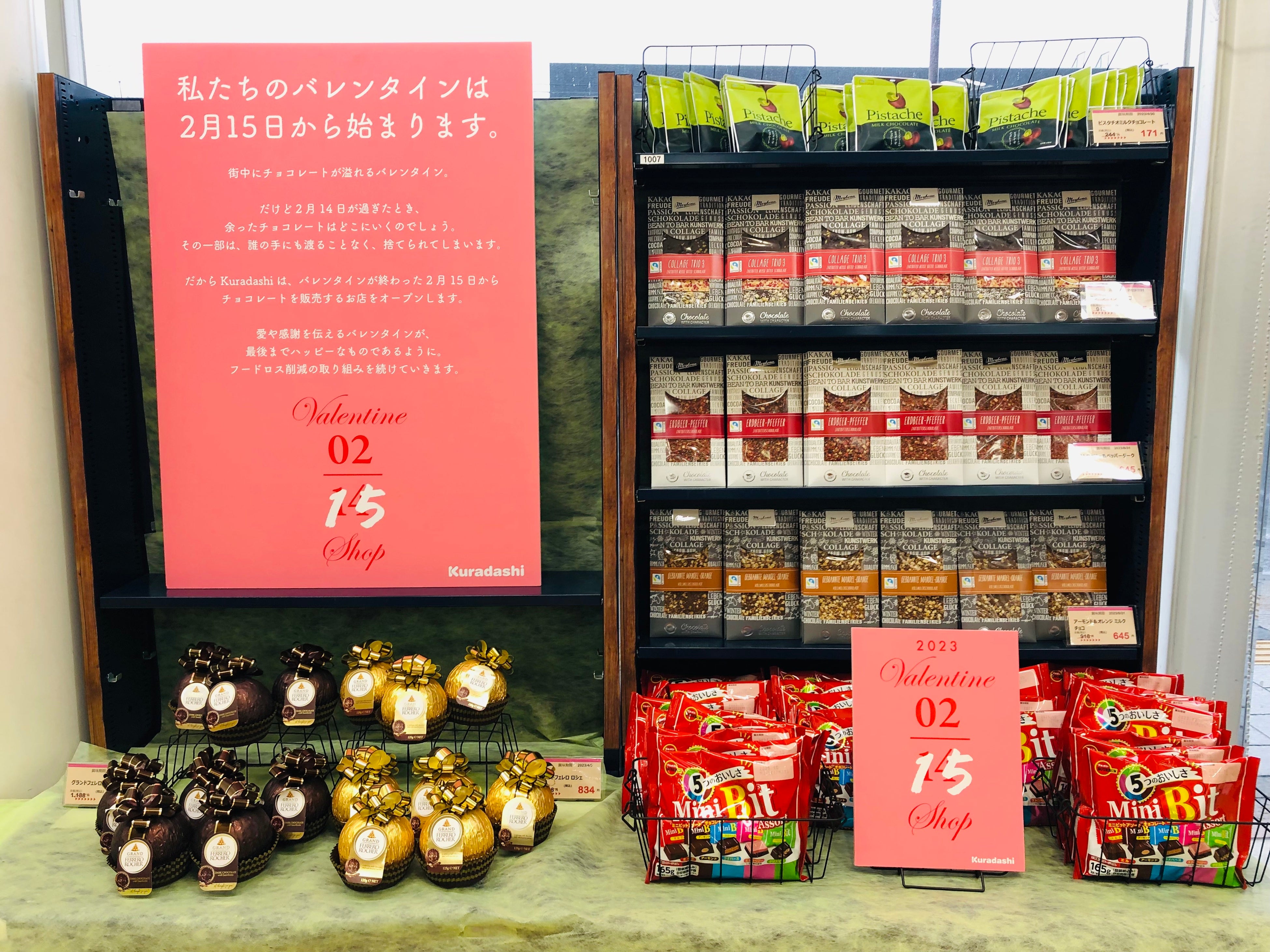 「こういった現状を知っていただくとともに、ロス削減にも取り組む機会を提供したい」という想いから、クラダシは2022年に「私たちのバレンタインは2月15日から始まります。」というメッセージとともに、バレンタインに発生する季節商品のロス削減に取り組むPOPUPを3日間の期間限定で東京都内の東急プラザ2店舗で実施いたしました。