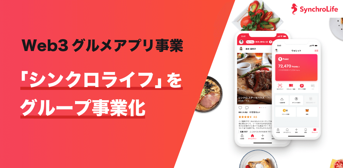 当社は「ライブドアブログ」を中心としたUGC(User Generated Content)メディア、「ライブドアニュース」「Kstyle」を中心としたPGC(Professionally Generated Content)メディアが一体となったネットメディアサービスを展開し、7,000万規模の月間利用者数及び3,000万を超えるSNSフォロワーを有しております。「シンクロライフ」は、ユーザー自らのレビュー投稿による情報提供や、店舗への来店の価値がデジタル資産化されるEat to earn型プラットフォームです。現状ほぼ全てのグルメサイトが来店促進を促すビジネスモデルを展開するなか、加盟店に対してエンドユーザー向けアプリ連動型の顧客分析ツール(CRM)を成果報酬型で提供し、顧客のロイヤルティ化・PR・来店促進等のDX化を支援するビジネスモデルが特長です。今回、当社は「シンクロライフ」事業を取り込み、グルメ情報分野におけるバーティカルメディアサービスの拡充並びにトークンエコノミーを活用した新たな顧客体験の提供やユーザーロイヤルティの向上を図ります。それと同時に「ライブドアニュース」の拡散力や「ライブドアブログ」を含む他のバーティカルメディアとの連携を通じて「シンクロライフ」のユーザー増を促します。
