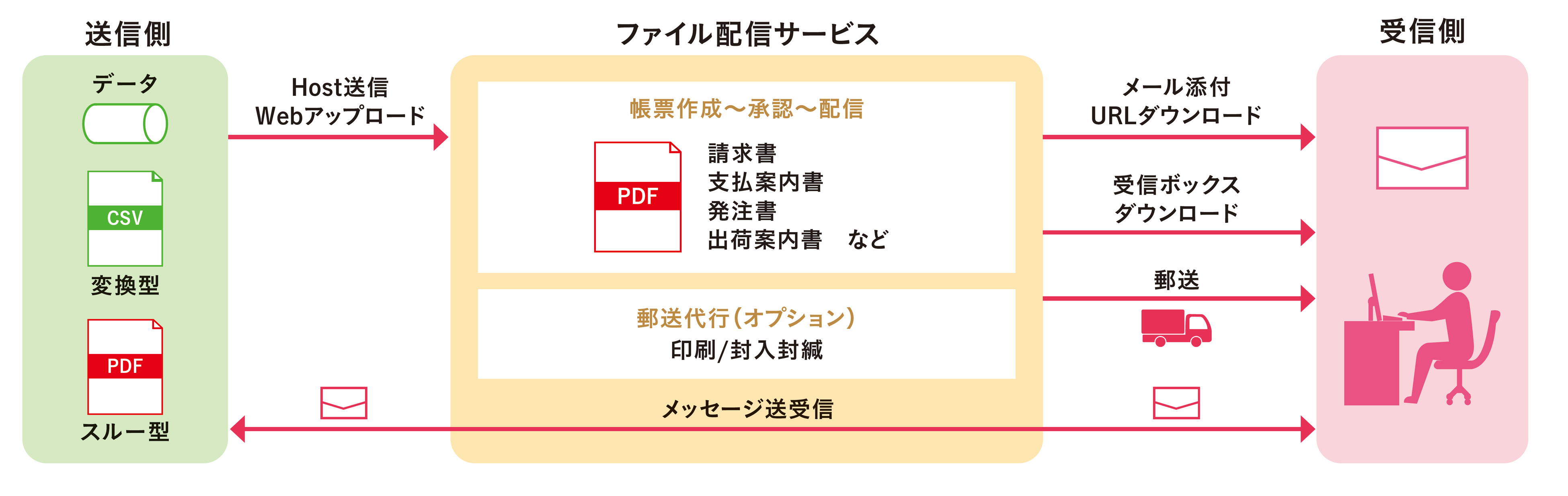 帳票イメージ(PDFファイル)は、メールやWebで受信側へ配信されます。