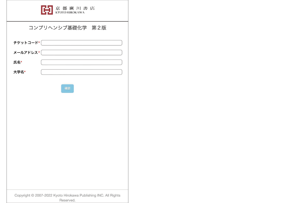 新入生が購入する教材セットの中に電子教材をダウンロード可能なチケットコードが記載された小冊子が封入されており、「bookend」サービスが提供する「チケット認証画面」にて購入者がチケットコードを入力すると電子版の教材がダウンロード可能になります。