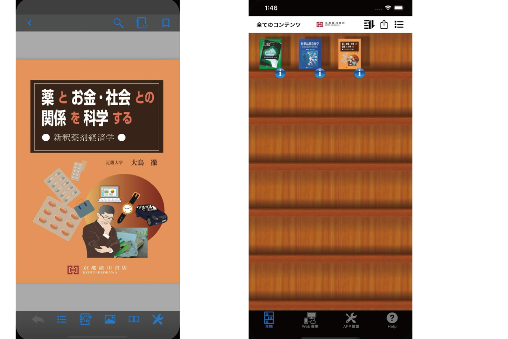 閲覧方法:「京都廣川e-bookアプリ」のWeb書庫に暗号化されたPDFを配信しアプリ内にダウンロードして閲覧