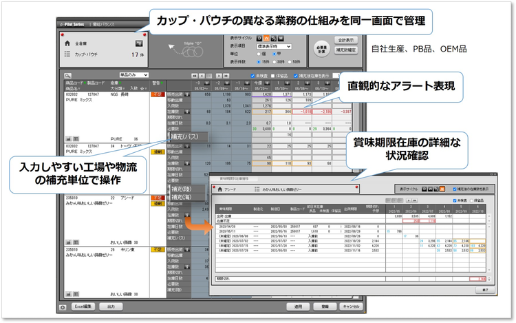 ■ 営業・生産・物流部門の情報が一元化され、先々の在庫状況まで見通しが立てられるようになり、より安定的な商品供給体制を構築