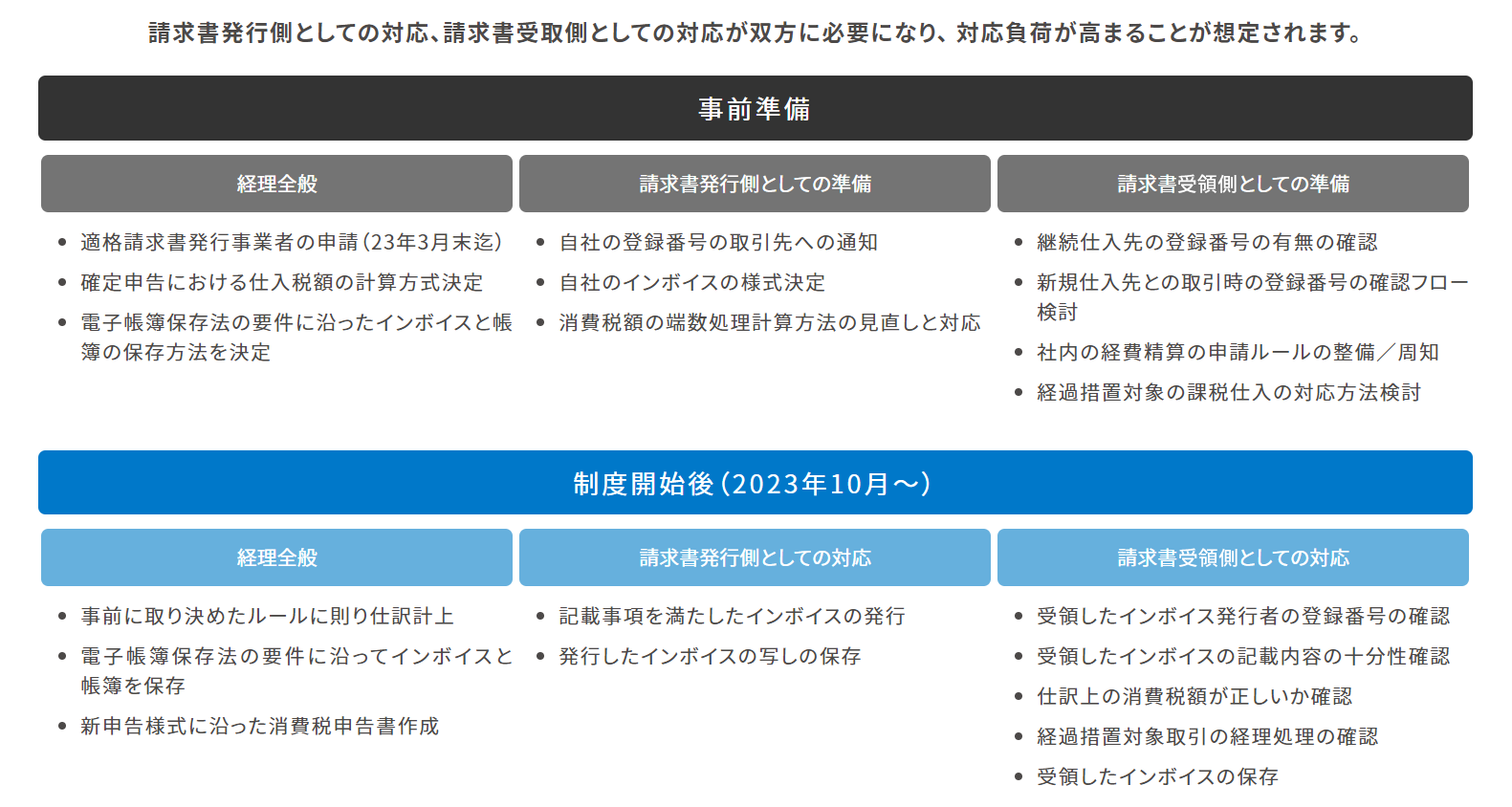 2023年10月のインボイス制度開始と準備期間が重なっており、早期に準備を開始することが求められます。