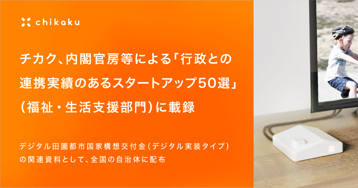 チカクが開発・販売している「まごチャンネル」は、これまでに大阪府泉大津市、兵庫県たつの市、徳島県東みよし町との実証実験で活用され、また、宮城県七ヶ宿町の補助事業である「家族の絆ほほえみ事業」に採択されるなど、自治体との連携実績があります。