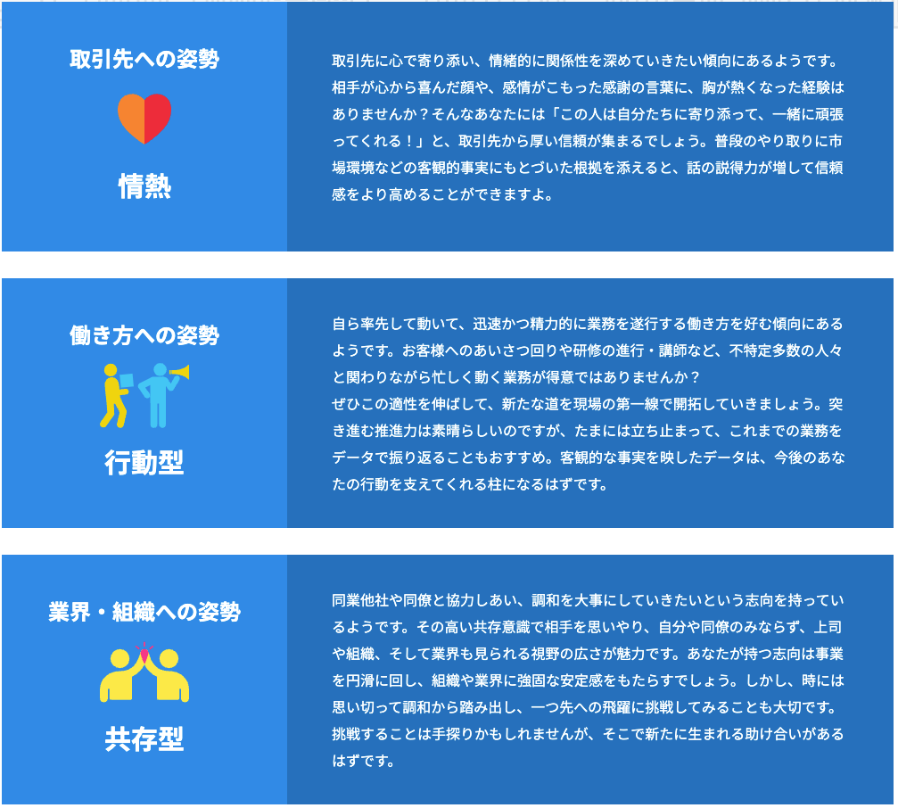 画像:ラクテス ビジネスキャラ診断の診断結果画面