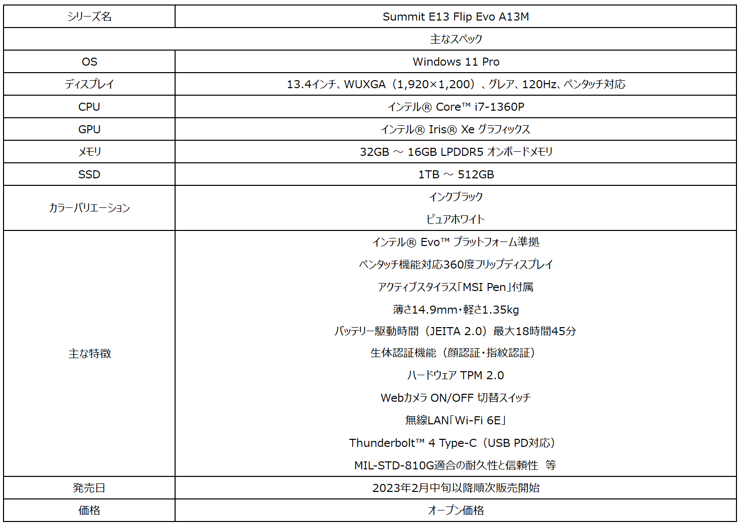https://jp.msi.com/Business-Productivity/Summit-E13-Flip-Evo-A13MX