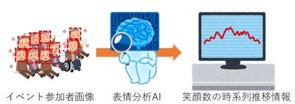 施設間交流イベントにおいては、「参加者がeスポーツイベントを楽しめているか」「満足できているか」を定量的に測るため、「表情分析AI*3」を活用した笑顔の測定も実施しました。イベントでの出来事や時間の経過による笑顔数の変化などから、「eスポーツを楽しみながら交流することができていたか」を検証いたします。