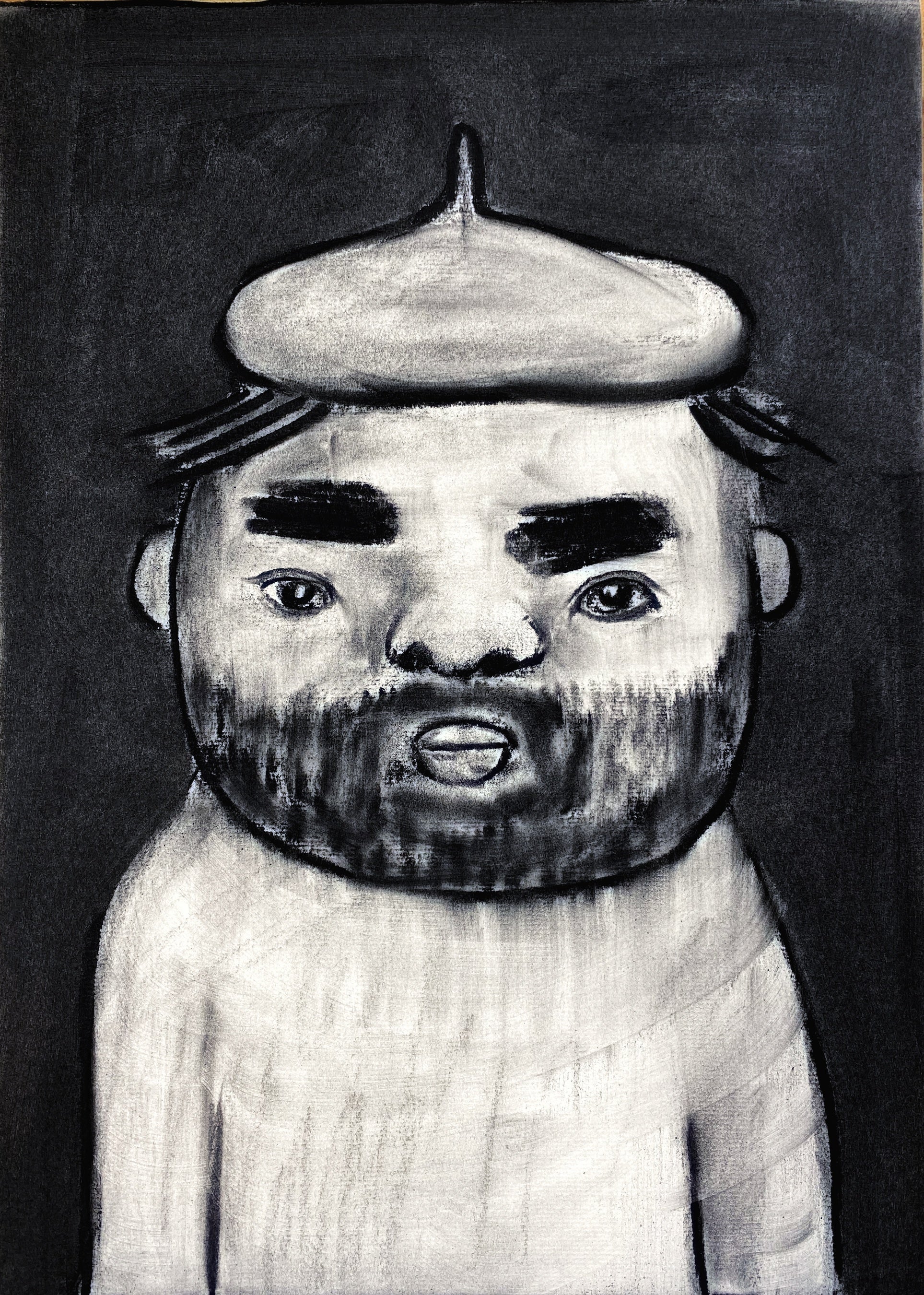 アウトローな気質をそなえ、彫刻だけでなく絵画領域にフィールドを広げ、幅広く活動している。2頭身の立体作品は、ニュートラルな立ち姿で観る者に様々な想像力を掻き立て、人気に火をつけた。また、木彫作品からも伺える色彩感覚と空間構成のセンスが平面にも発揮されている。シンプルに且つ大胆に構成され、隣り合った色と色の関係性が際立った背景の中に描かれたキャラクターは何とも不思議な表情や動きで描かれている。2020年にはNYで個展が開催されるなど、日本に留まらず、海外でも人気も上昇。ペシミスティックな題材をアチャラカに表現する高度なセンスが高い評価を得ている。