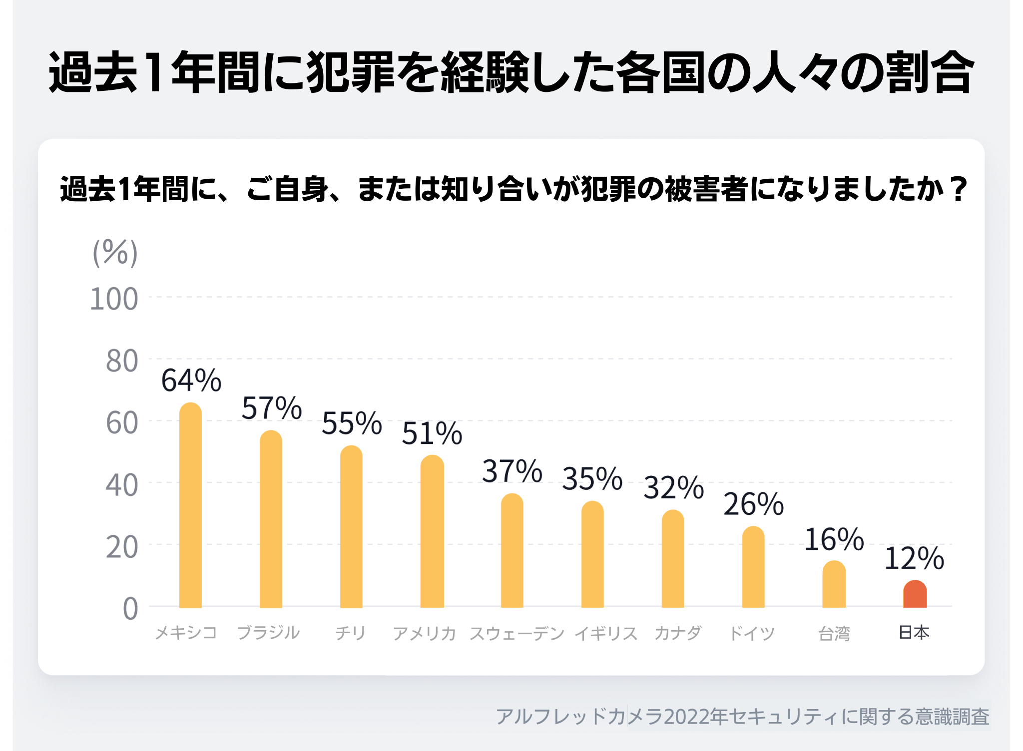 過去1年間で犯罪に遭遇した日本人は12パーセント、米国人は50パーセント以上
