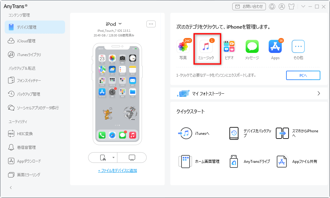 9000万以上のユーザーが愛用するAnyTransはiPhone/iPad/iPod内のデータの転送、管理、バックアップを行えるファイル管理ユーティリティです。iTunesの代替ソフトに限らず、同時にフォーマット変換機能、iCloudの管理機能なども兼ね備えています。