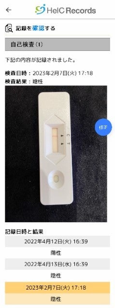 自己検査キットの検査結果などを写真とともに記録することができます。