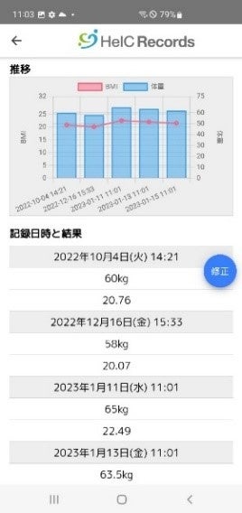 ・BMIチェックなど自己のセルフチェックを記録できます。