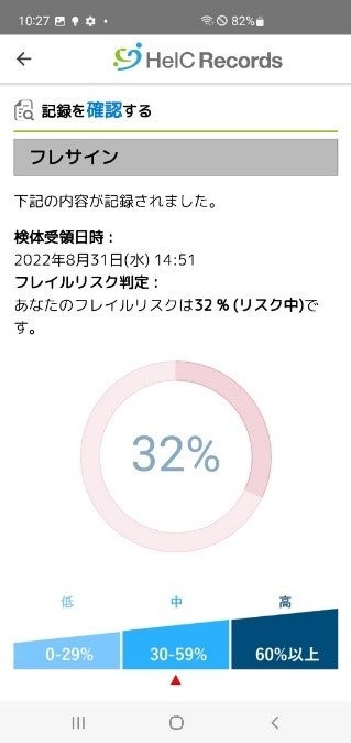 ご自宅で唾液を採取、検査機関へ郵送するだけで、現在のフレイルの状態とともに、口内の状態もチェックできる検査キット「フレサイン」の検査結果を受け取ることができます。