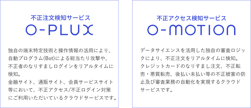 かっこは、「未来のゲームチェンジャーの『まずやってみよう』をカタチに」という経営ビジョンを掲げ、当社の有するセキュリティ・ペイメント・データサイエンスの技術とノウハウをもとに、アルゴリズム及びソフトウエアを開発・提供することで、企業の課題解決やチャレンジを支援することを目指しております。特に、オンライン取引における「不正検知サービス」を中核サービスとして位置づけ、不正注文検知サービス「O-PLUX(オープラックス)」、不正アクセス検知サービス「O-MOTION(オーモーション)」を提供しております。