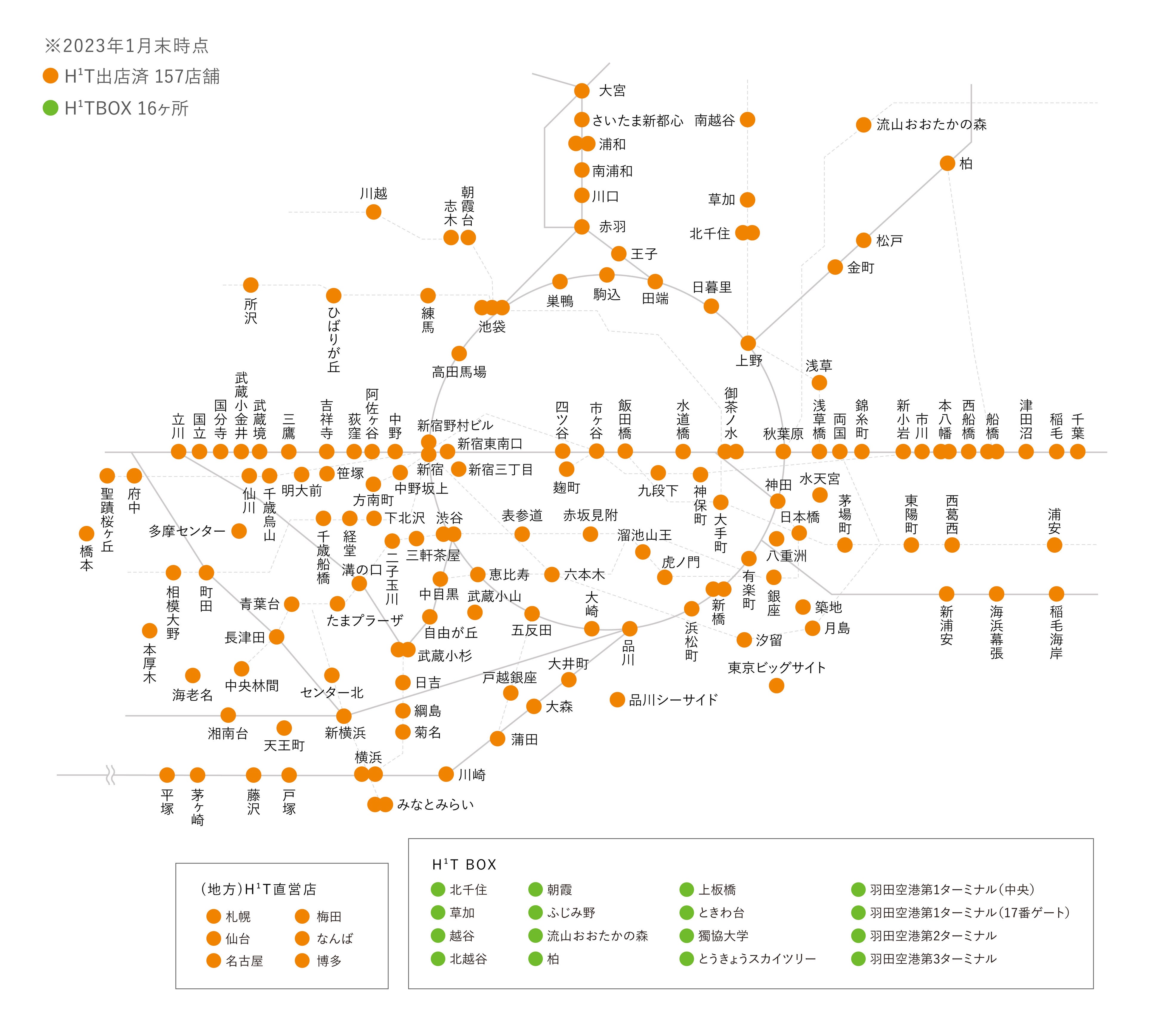 この度の連携により、全国のH¹T直営店157店舗およびH¹T BOX16ヶ所の4,800超のスペース(※2)を「インスタベース」に登録している利用者は、追加の事前登録等なしで「インスタベース」から予約・利用することが可能になりました。
