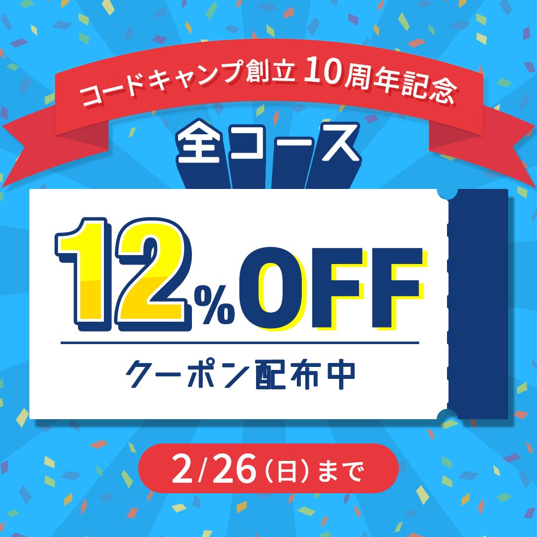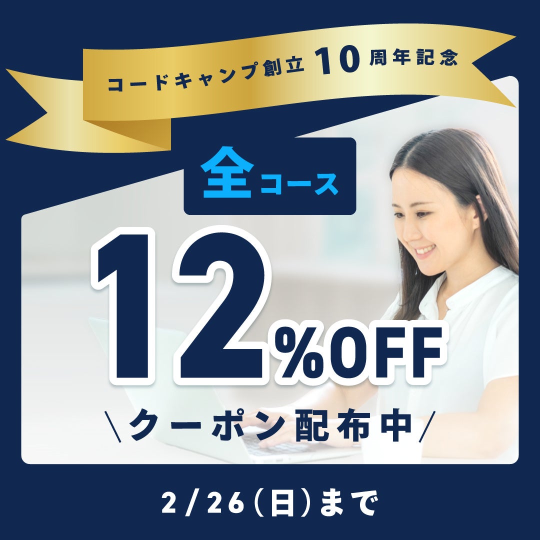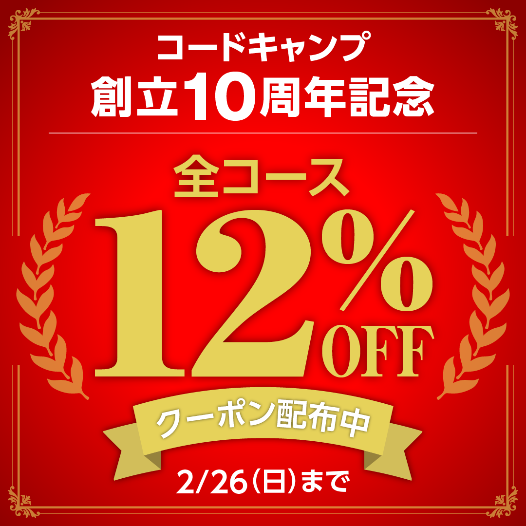 今回は、コードキャンプ創立10周年を記念したキャンペーン実施に伴って、実際にCodeCampのサイトで使用するバナーを募集しました(提出課題の要件は後述)。応募者の中から、特に優れた作品を最優秀賞・優秀賞に選出しましたので発表します。