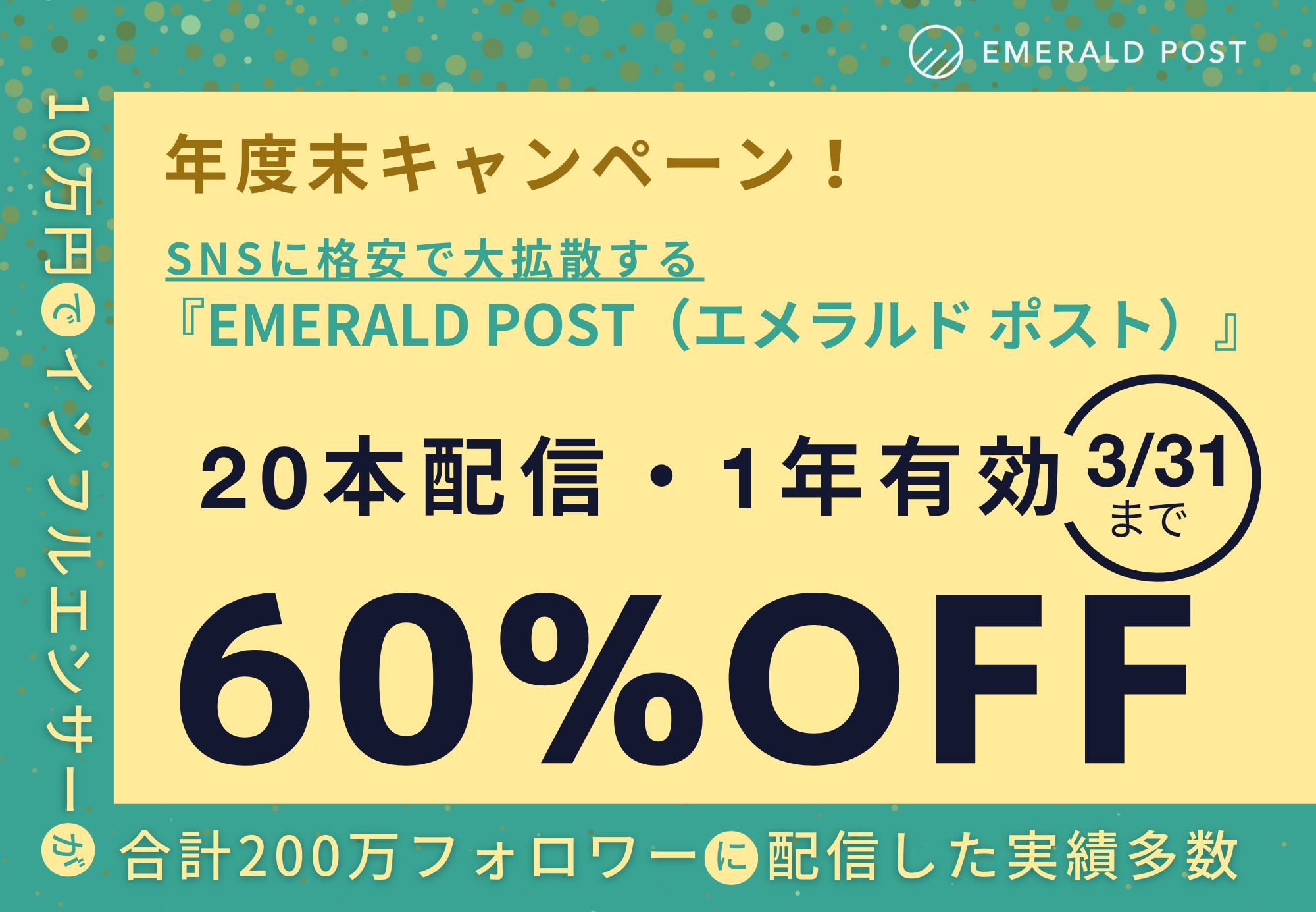 年度末の予算消化商材として、お試しいただきやすい今回の特別パッケージで、ぜひ『EMERALD POST(エメラルド ポスト)』の情報発信力を実感してください。