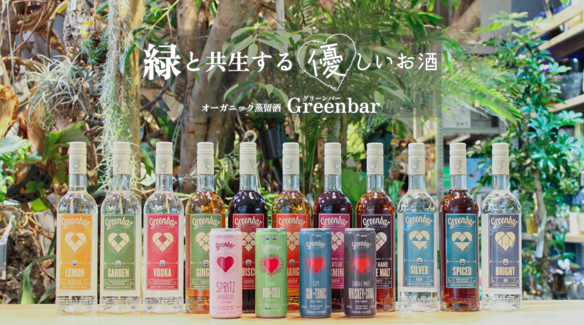 アメリカロサンゼルスのGreenbarDistillery(グリーンバー蒸溜所)がつくるすべてUSDAオーガニック認証済みの蒸留酒シリーズ(ボトル&缶カクテル)。ジン、ラム、ウォッカ、リキュール、シングルモルトウイスキーなど、10種類以上のオーガニック認証済みの蒸留酒ボトルと、その蒸留酒でつくったRTD(ReadytoDrink)缶カクテルなどがラインナップ。