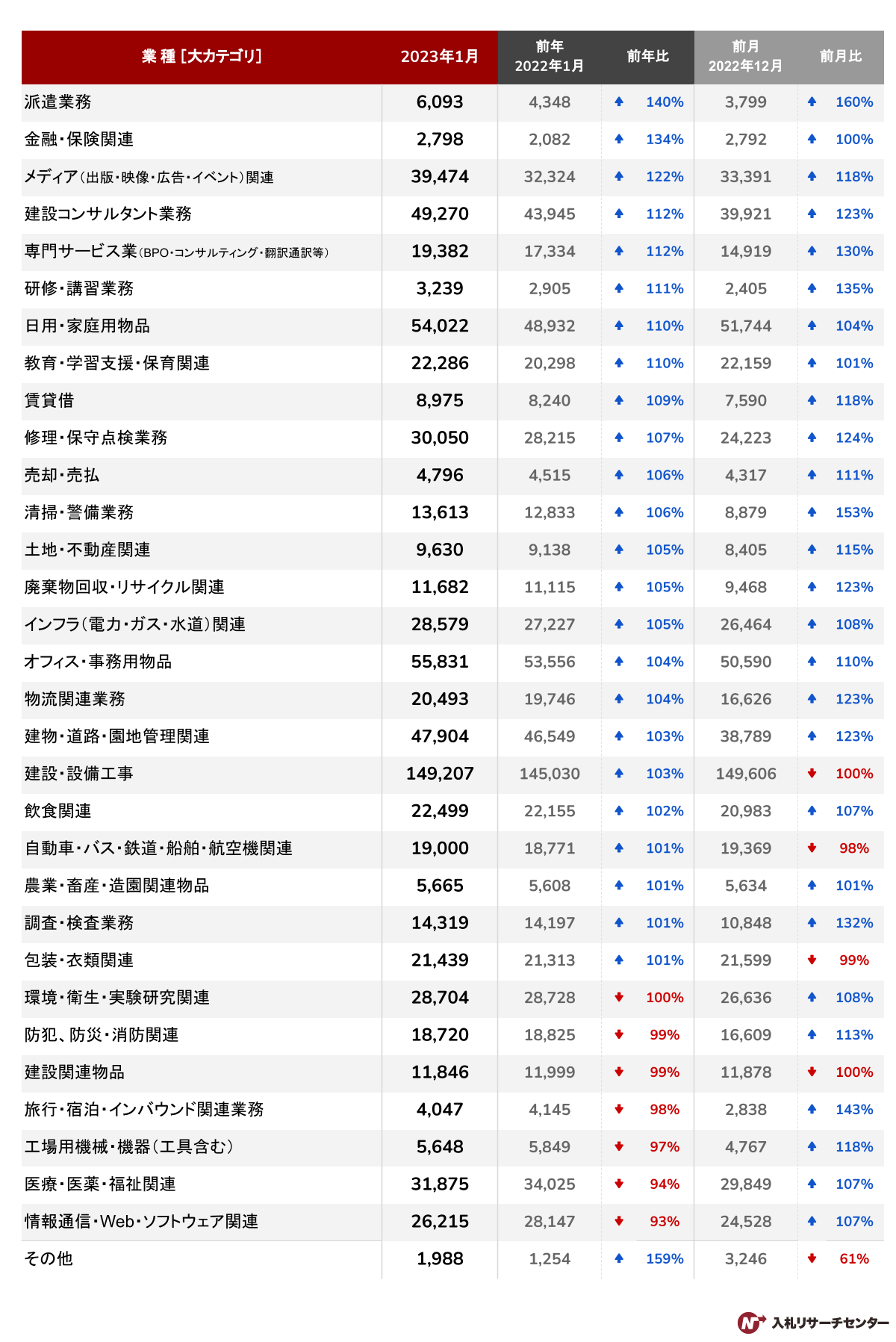 調査名:入札リサーチセンターマンスリーレポート(2023年1月度)