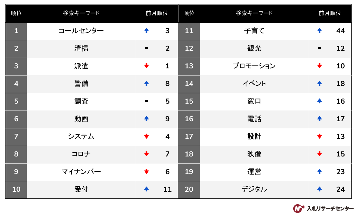 入札案件 検索キーワード 2023年1月度の第1位は、「コールセンター」となりました。