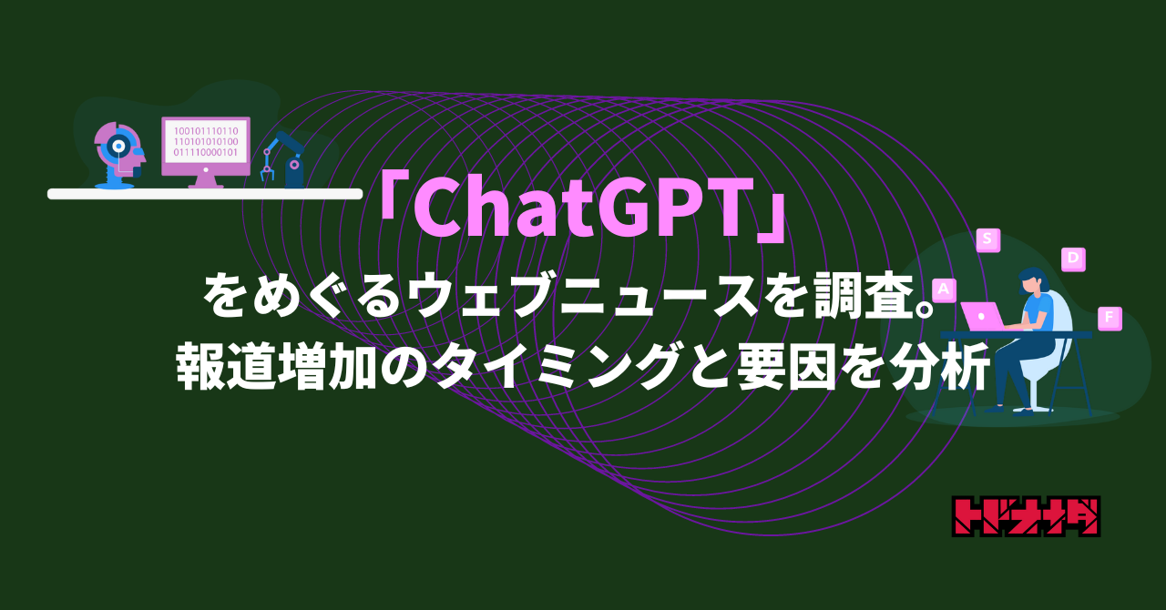 この調査では、ChatGPTに関するウェブニュースを、とくにその記事数の変動に着目して調査し、報道が増加したタイミングとその要因を分析しました。