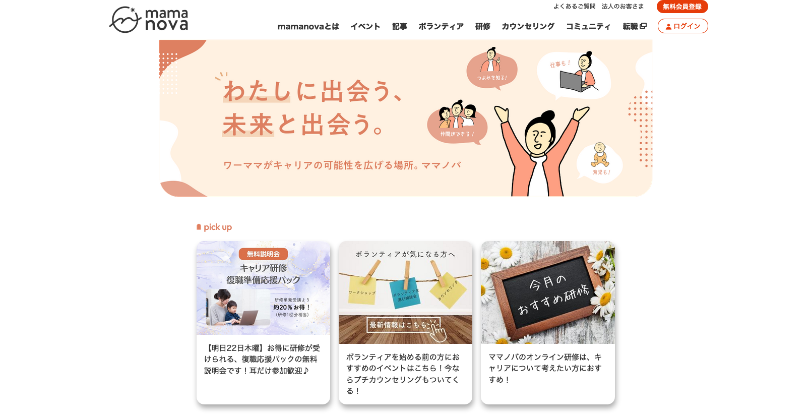 ワーママがキャリアの可能性を広げることができるでき、いつでも・何度でも立ち寄れる場所として「mamanova」を運営しています。