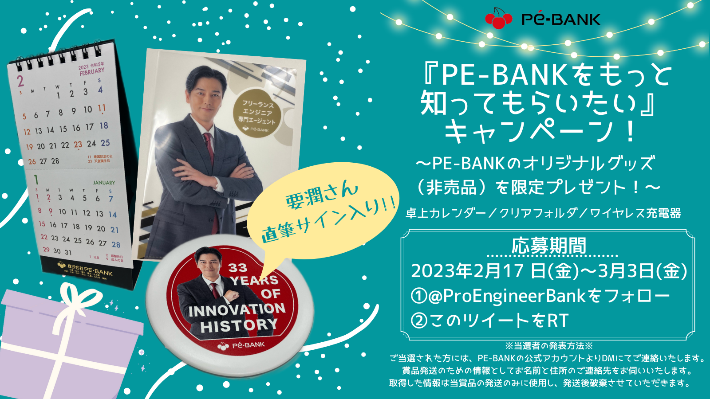 応募方法:PE-BANK公式Twitterアカウント(@ProEngineerBank)をフォロー&リツイート