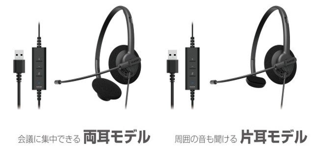 会議に集中できる「両耳モデル」と周りの音も聞ける「片耳モデル」の2種類をご用意しています。USB Type-A接続のため、そのままパソコンと接続するだけで使用することができます。