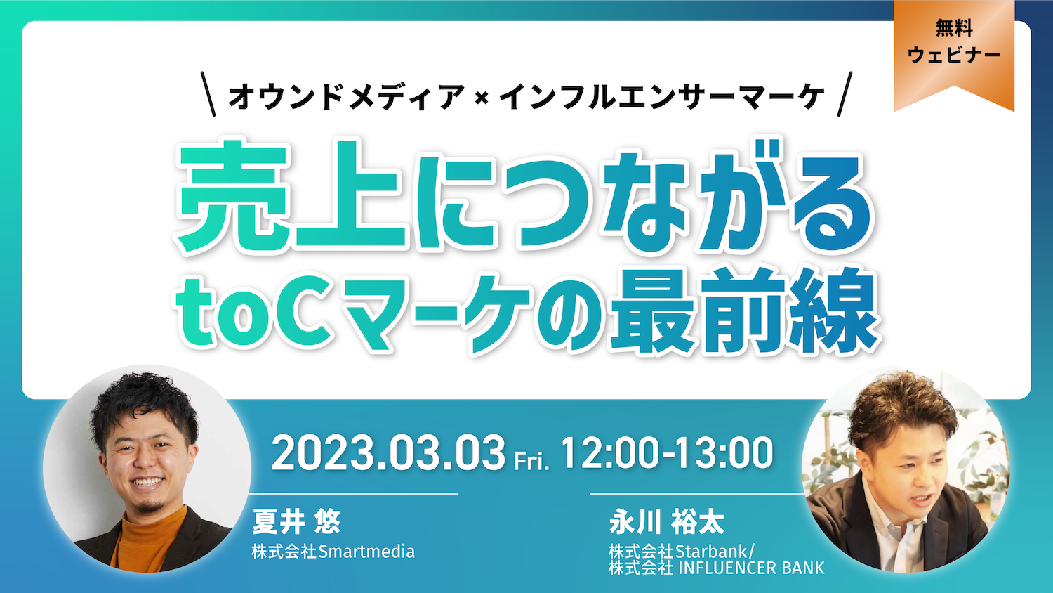 - 内容 :【売上につながる! オウンドメディア×インフルエンサー toCマーケティング最前線】