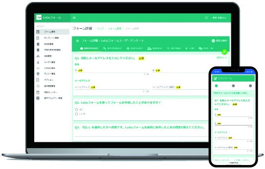 「LoGoフォーム」は2020年3月に提供開始した、行政手続きや申し込み受付などを簡単かつ効率的にデジタル化できるLGWAN対応の電子申請システムです。住民は「LoGoフォーム」で作られた申請フォームを通じて、24時間365日PCやスマートフォンでさまざまな行政手続きをすることができます。自治体職員はプログラミングやIT技術を使わず「ノーコード」で自ら電子申請フォームの作成、自動集計やグラフ化、データベース化をすることができ、業務効率化や外部委託コストの削減、行政デジタル化のスピード向上につながります。