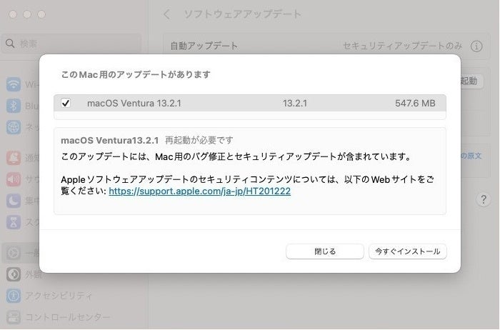macOS Ventura13.2.1は2023年2月13日(米国時間)にリリースされました。