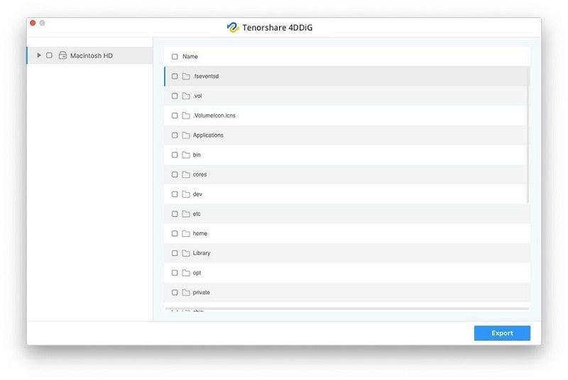 手順4.ローディング画面で動かなくなった Mac にこの起動可能なドライブを挿入し、「Option」キーを押しながら起動します。キーを放し、「4DDiG Macデータ復元」を選択してディスク サークルを起動し、プレート選択インターフェイスに入ります。現在、「エクスポート」をタップするとデータを取得できます。
