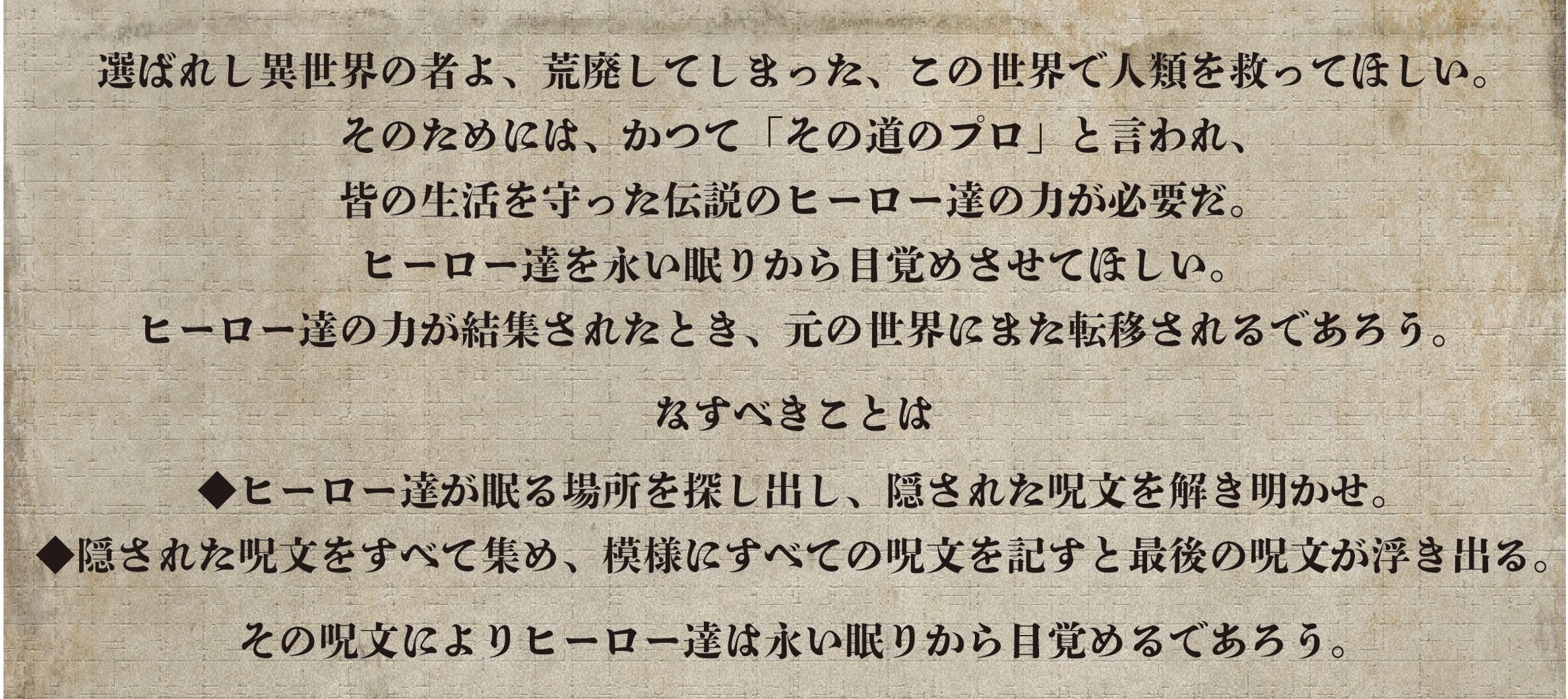 全てのキーワード(呪文)が集まると、最後のキーワード(最後の呪文)が分かります