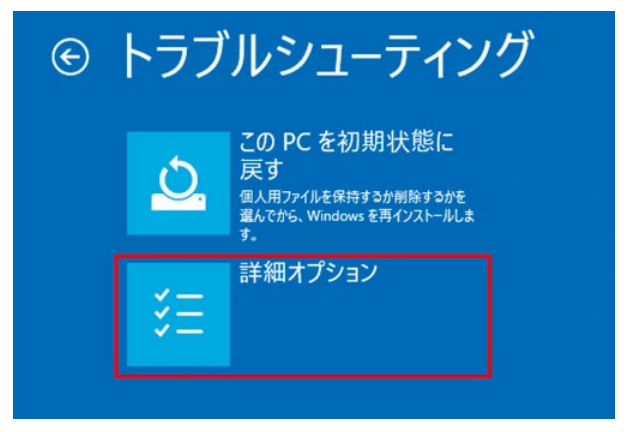回復ドライブから起動して自動修復ができる場合、自動修復プログラムにエラーがある可能性があります。以下の方法を参考に、回復ドライブで修復してください。